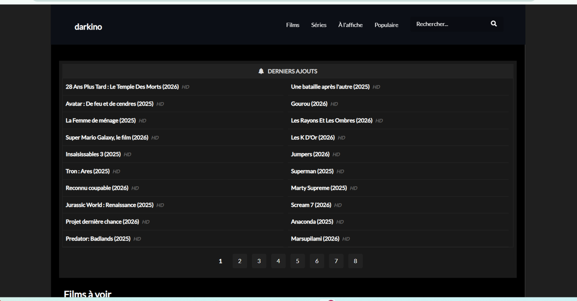 Cependant, il est important de comprendre que ce type de site de téléchargement illégal change régulièrement de nom de domaine. Aujourd’hui, vous pouvez accéder à darkino.be, mais demain, l’adresse peut être différente. Cette instabilité s’explique par les blocages imposés par les autorités, les actions des ayants-droit et la lutte contre le piratage.