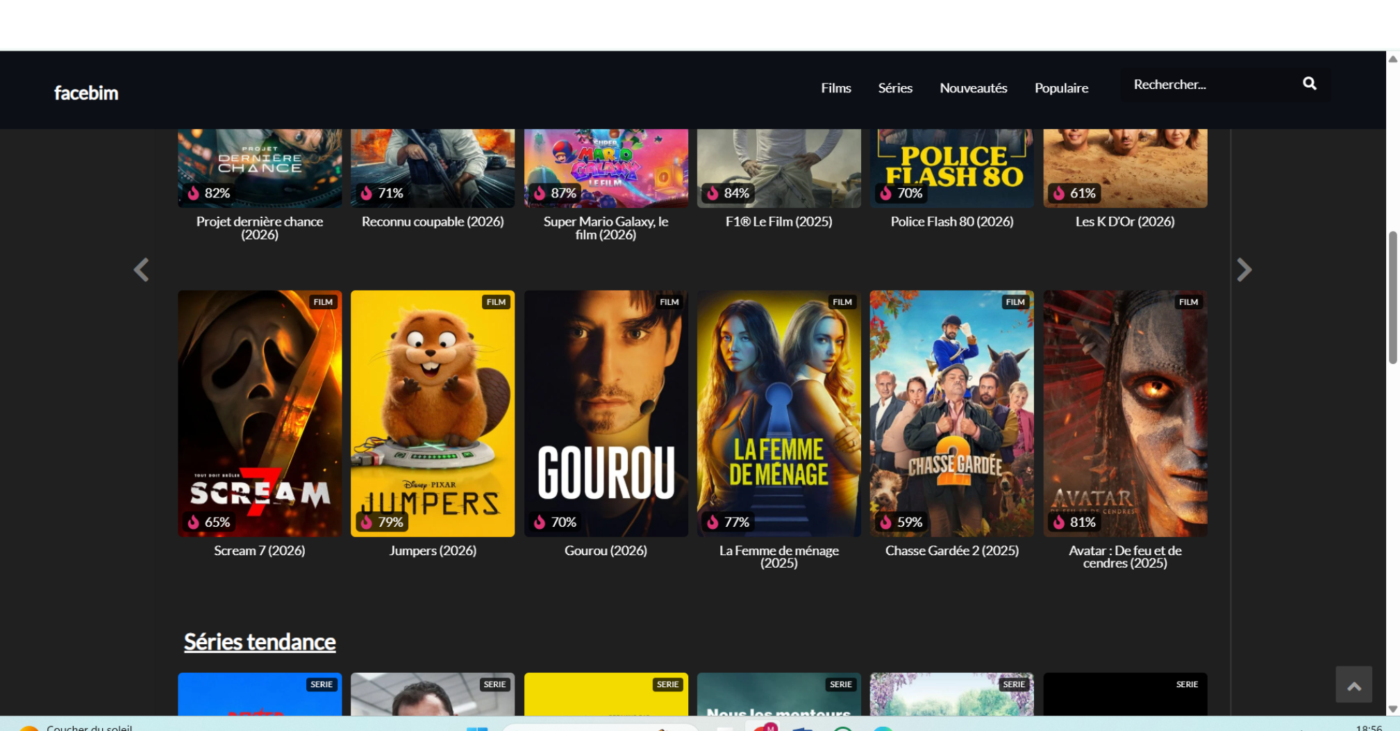 Facebim est présenté comme une plateforme de streaming gratuit qui vous permettrait de regarder :