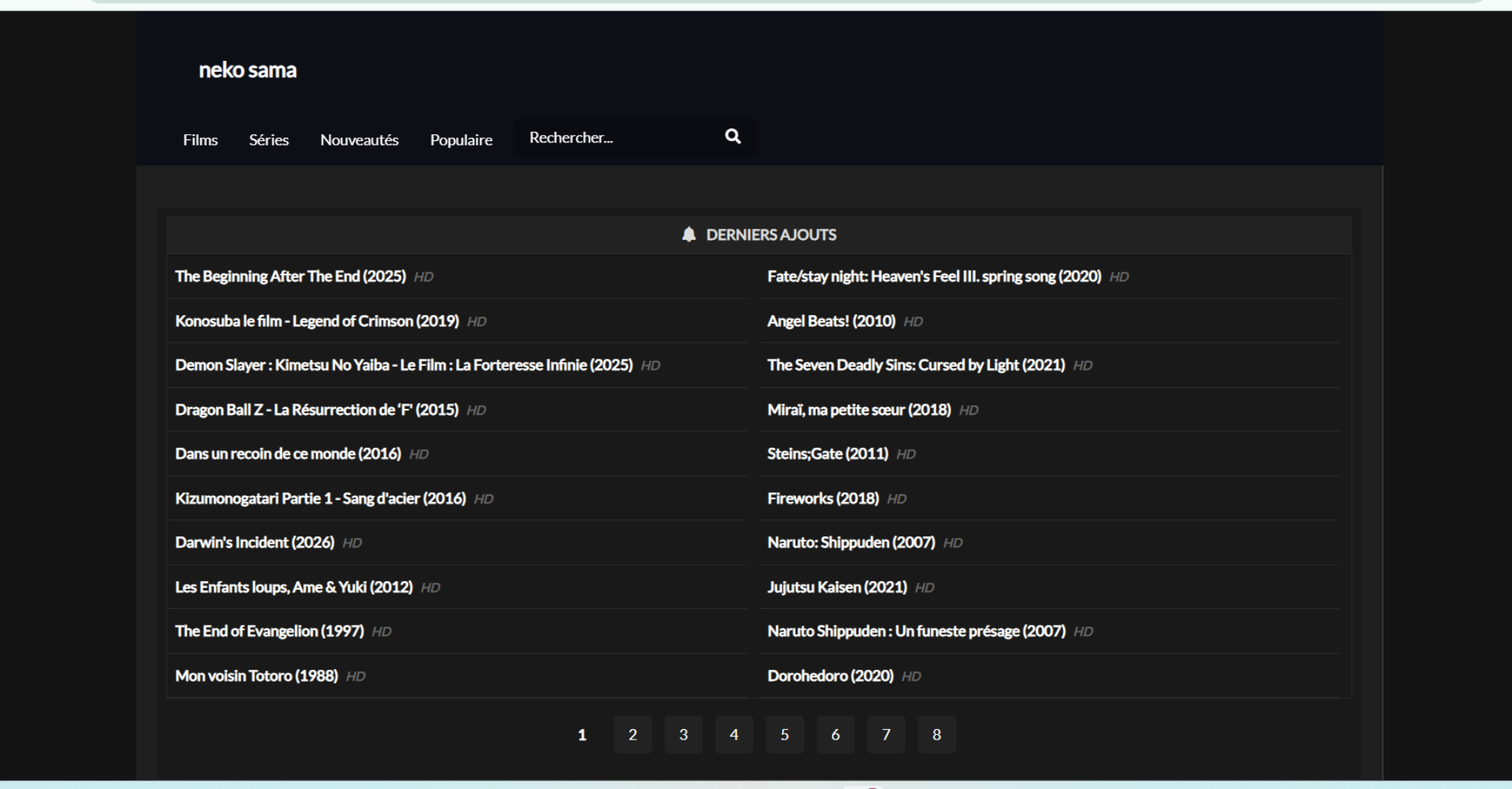 En pratique, Neko Sama est souvent décrit comme une plateforme simple d’utilisation, avec un catalogue varié et régulièrement mis à jour selon les contenus disponibles.