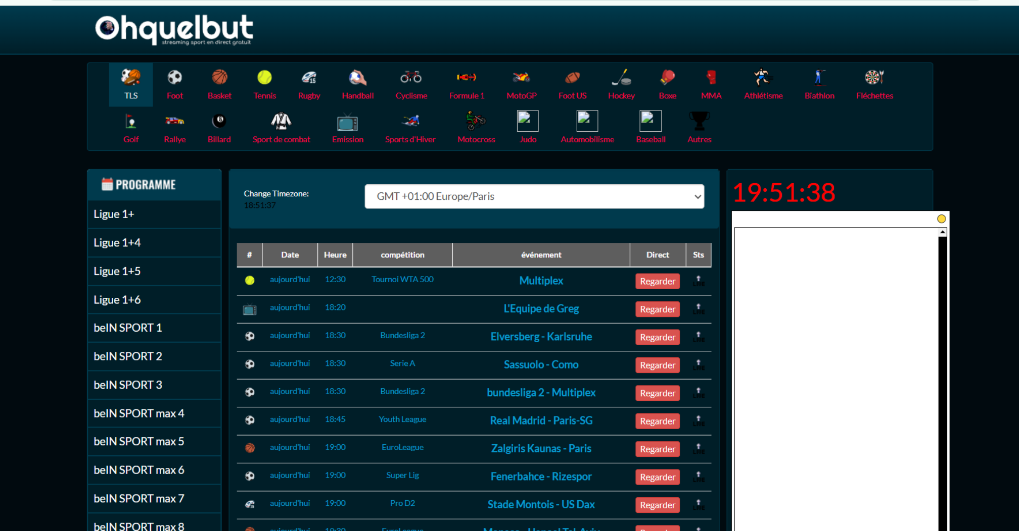 - Choisissez la catégorie sport (football principalement)